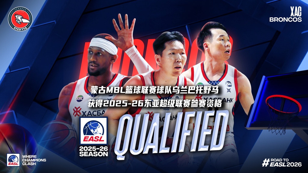 中国香港特别行政区,2025年5月22日 — 蒙古最顶级篮球联赛MBL(The League,简称:MBL)总决赛系列赛结束,乌兰巴托野马(Xac Broncos)经过6场苦战夺冠并晋级东亚超级联赛(EASL,简称:东超)。一项历史纪录随即诞生:乌兰巴托野马成为东超的首支蒙古参赛球队。