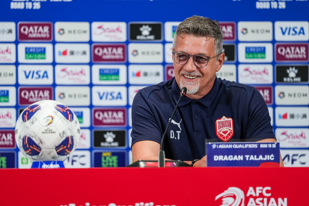 塔拉吉奇在介绍巴林备战情况时说:“很高兴来到这里,感谢重庆和中国足协为比赛所做的一切准备工作,井井有条,组织得很好。我们都在尽最大努力,尽管有很多困难和挑战。当下我们的心情和中国队一样,两队都没有进入下一阶段,但我们不会怠慢明天的比赛,这对双方都是很重要的比赛,我们会尽我所能发挥得更好。”
