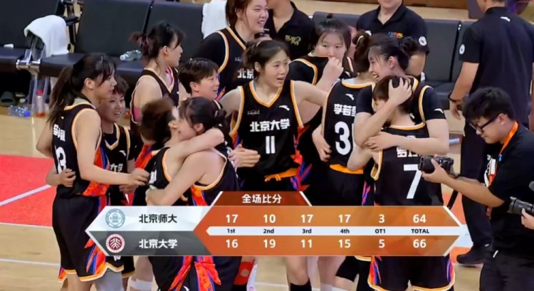 加时赛前北京大学教练被夺权送罚球,李青阳两罚一中为北京师大率先拿分,北大则以伍湘琳的抛投做出回应。拉锯战北京师大连续出现失误,北京大学则几次出手都没能命中且几次可以拉开比分的罚球不中导致悬念留到最后,北京师大最后有机会反超但两次机会都没能转化成进球。最终,北京大学66-64加时力克北京师范大学杀入总决赛。