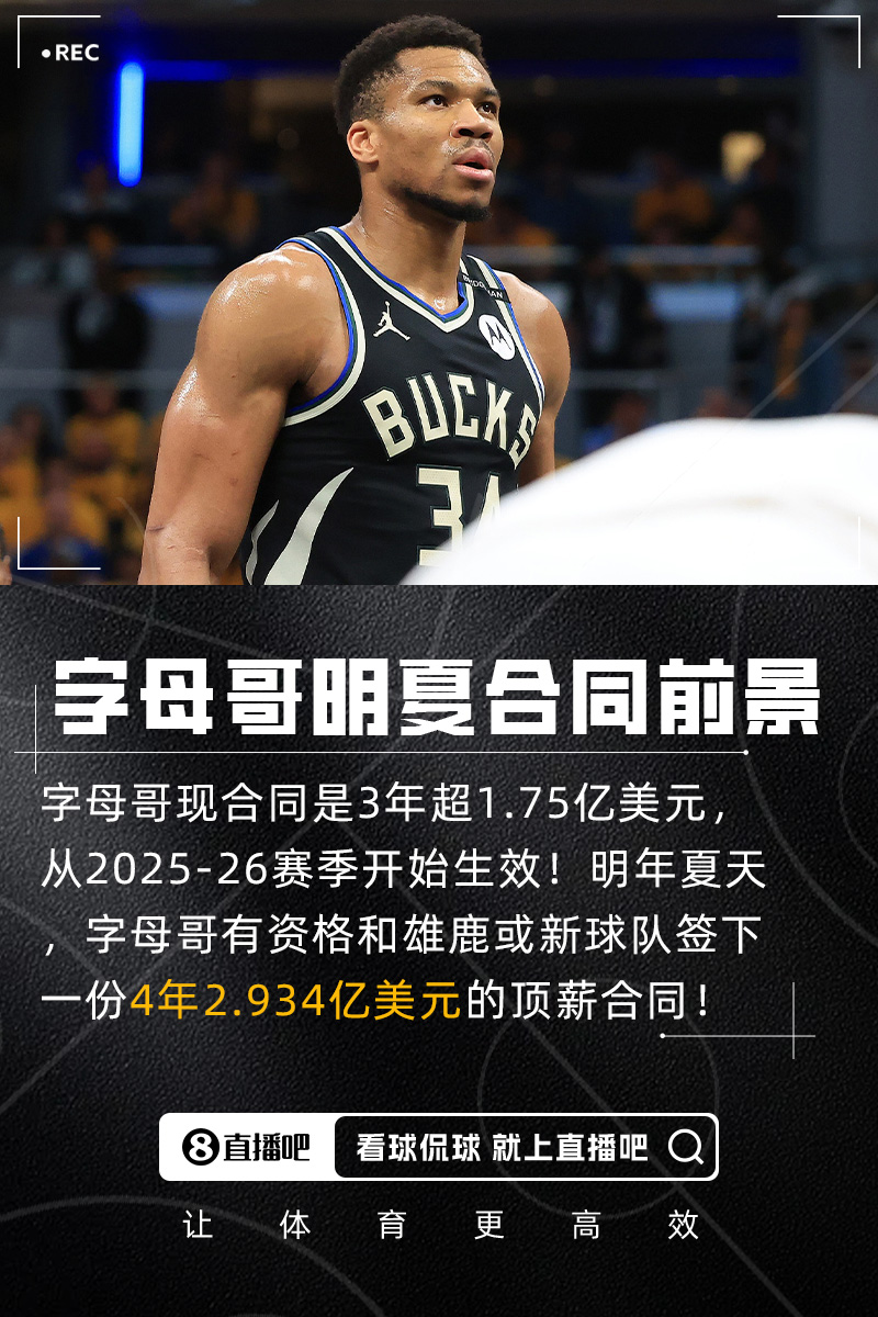 ESPN薪资专家Bobby Marks表示,2026年休赛期,字母哥有资格和雄鹿或者潜在的新球队签下一份4年2.934亿美元的顶薪合同,均薪7335万美元。
