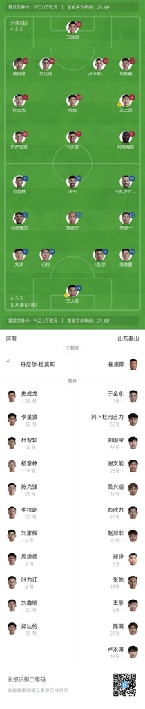 河南vs泰山首发:5外援PK!钟义浩、何超、刘洋、李源一先发